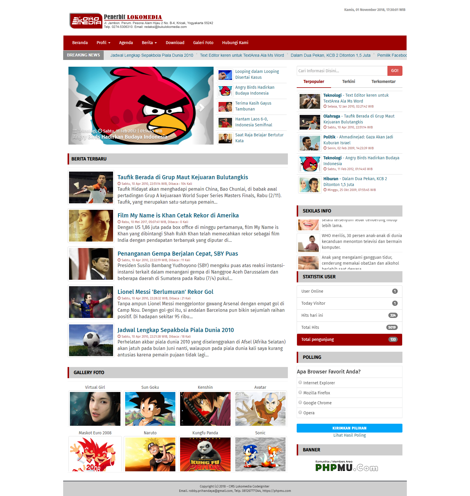 CMS LOKOMEDIA adalah salah satu CMS (Content Management System ) buatan anak negeri yang tak kalah menarik dibandingkan CMS yang lainnya. sobat dapat menggunakan-nya untuk web Intansi, sekolah maupun web pribadi, karena CMS ini cocok digunakan untuk berbagai macam keperluan yang sudah menyediakan beberapa modul yang siap pakai.Penjual : Umar Lapakers